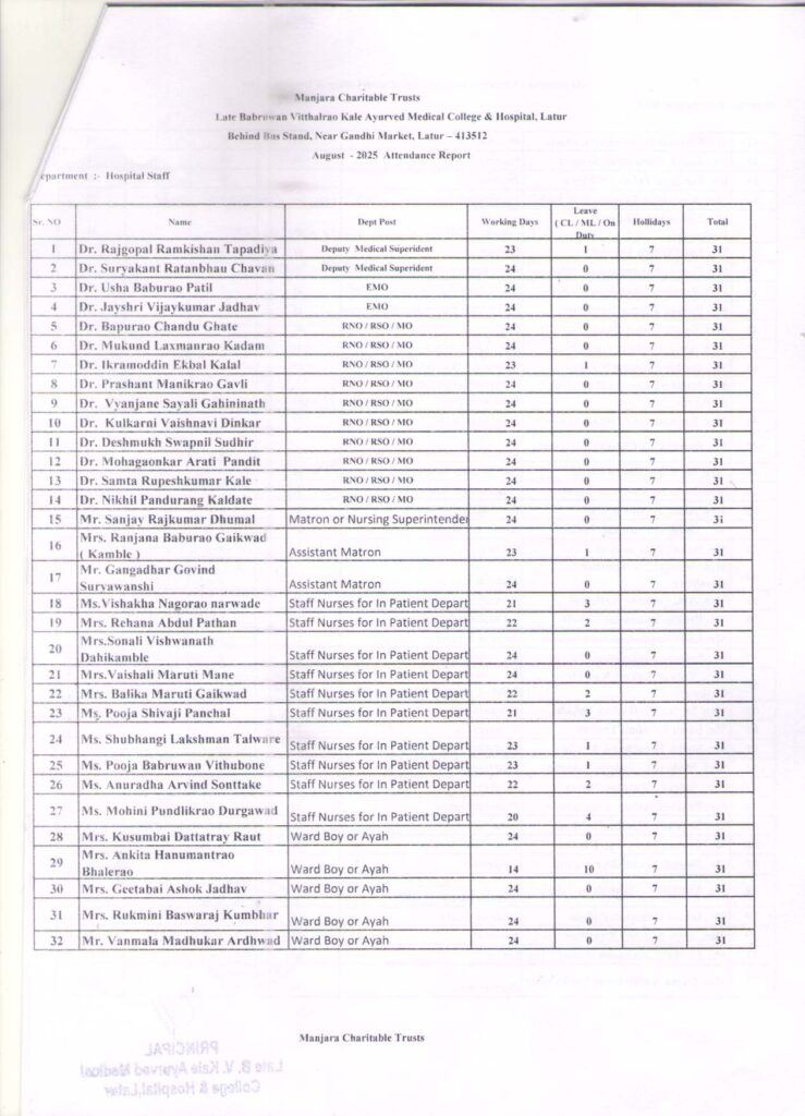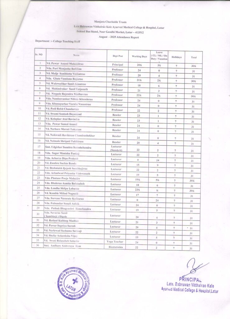 Attendance – Teaching, Non-Teaching, Hospital Staff and Students – August 2025
