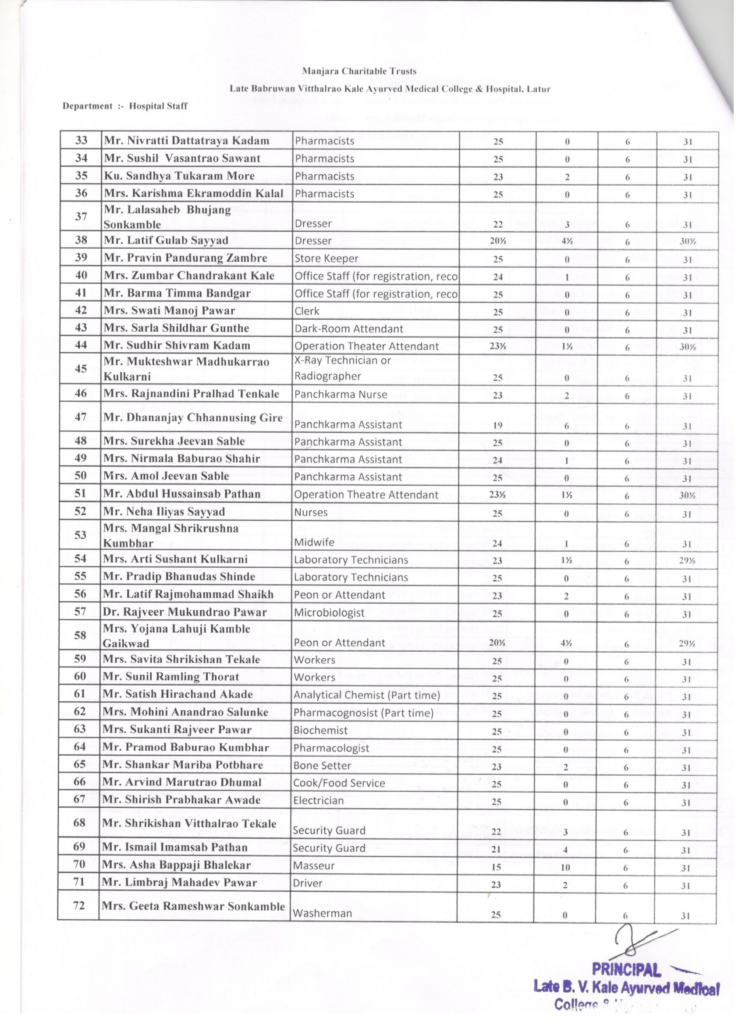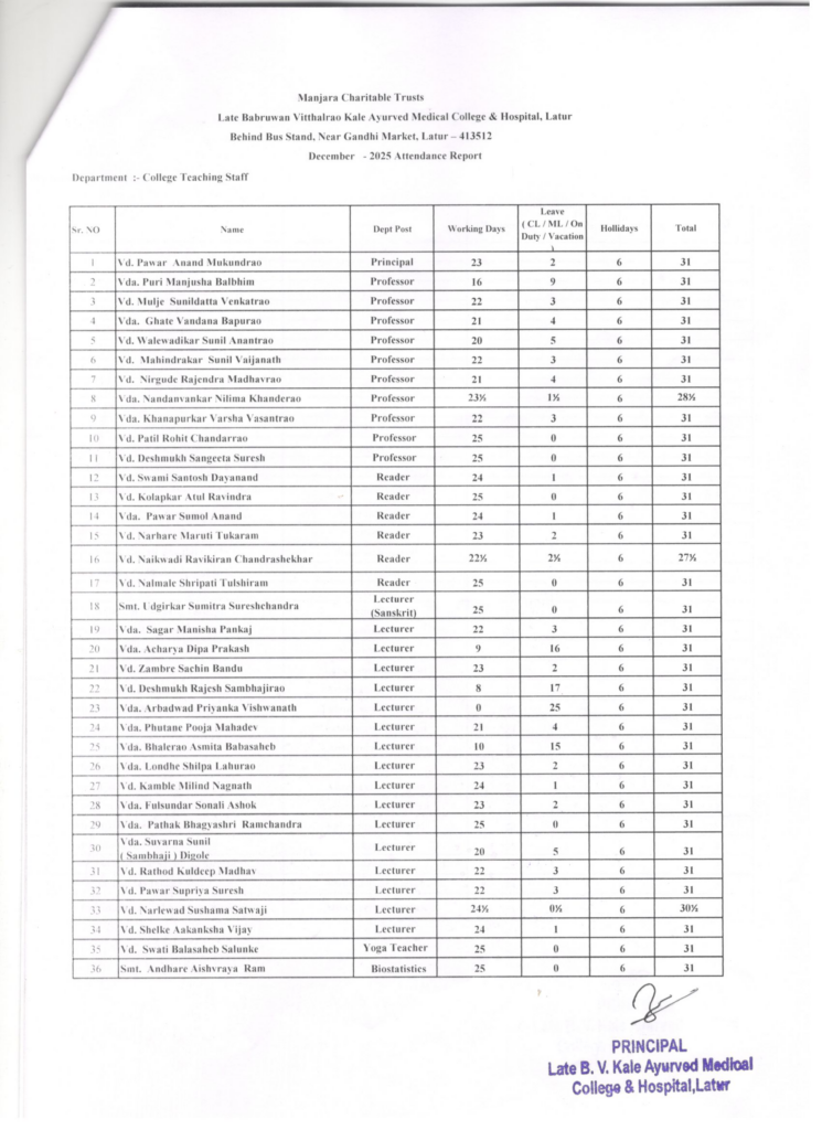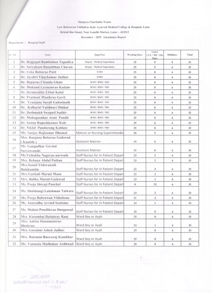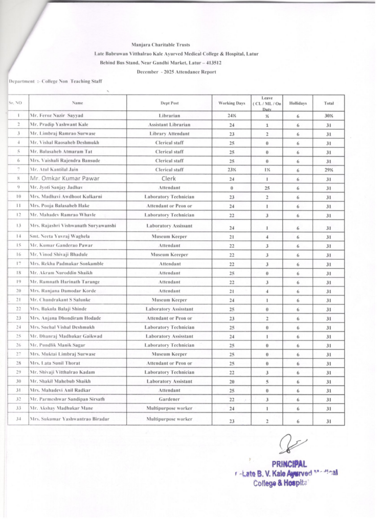 Attendance – Teaching, Non-Teaching, Hospital Staff and Students – December 2025
